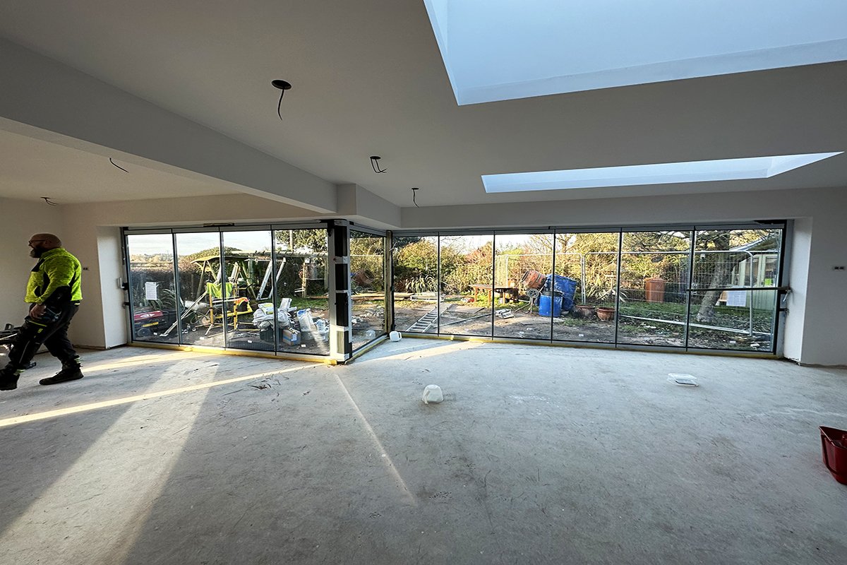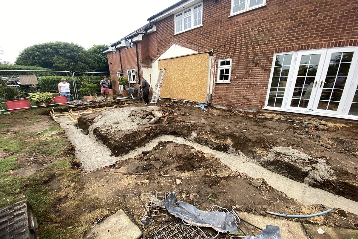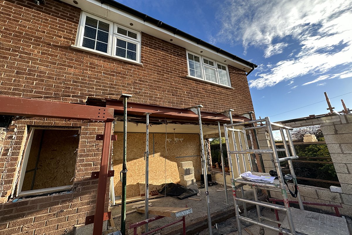 Removing the existing rear wall of the house to the ground floor whilst supporting the first floor and ensuring the kitchen was live and useable for the duration of the works.