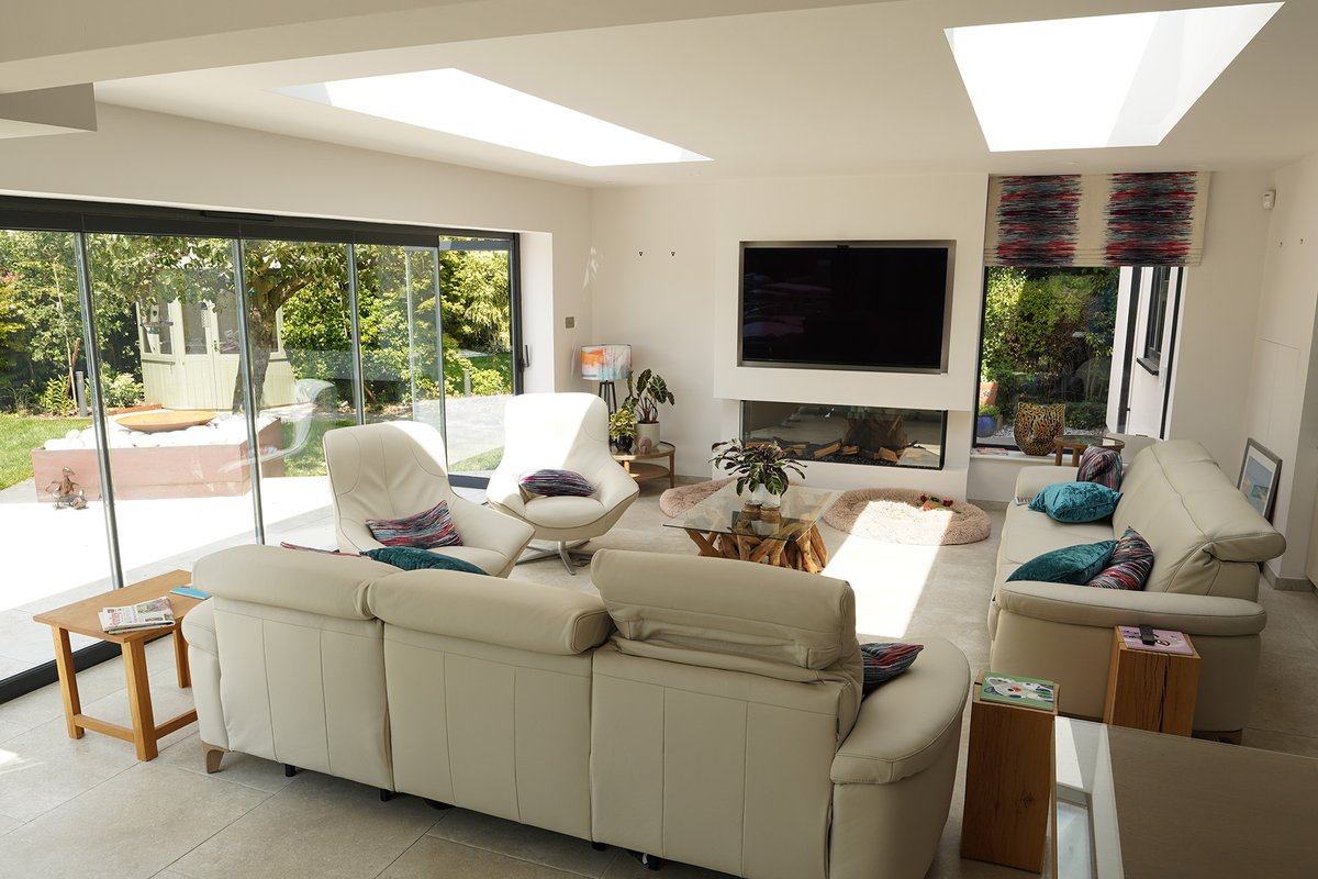 We added a large extension with 50sqm of floor area, a complete folding glass wall to the rear elevation of the extension, forming a new 4.2m wide opening on the rear of the existing property which resulted in an open plan area with a total floor space of 79sqm.